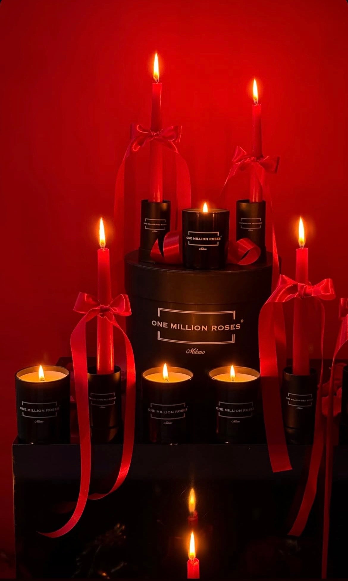 BLACK QUEEN SET - Small Box Rose Fresche e Cube Box petali - Candela Nera